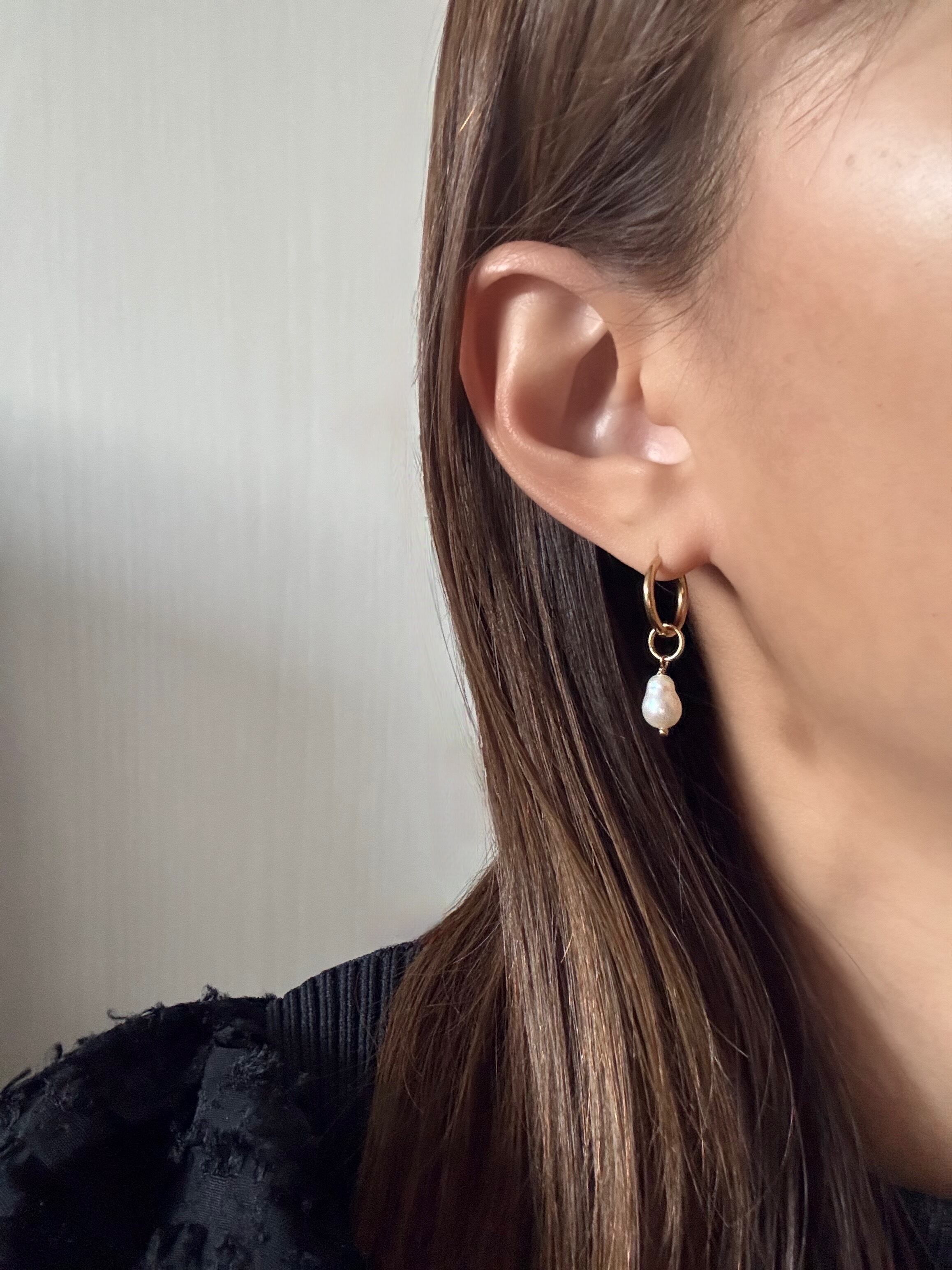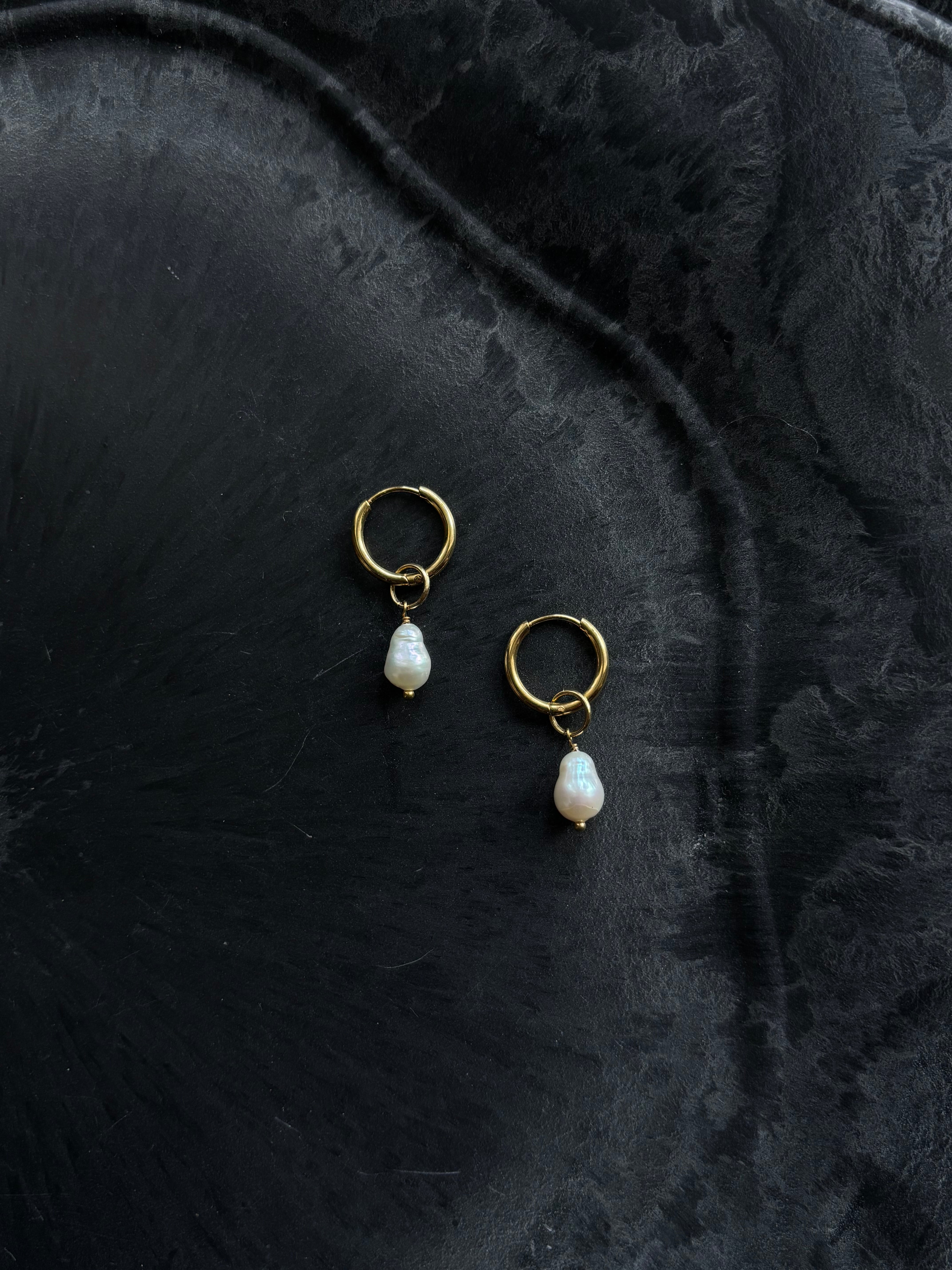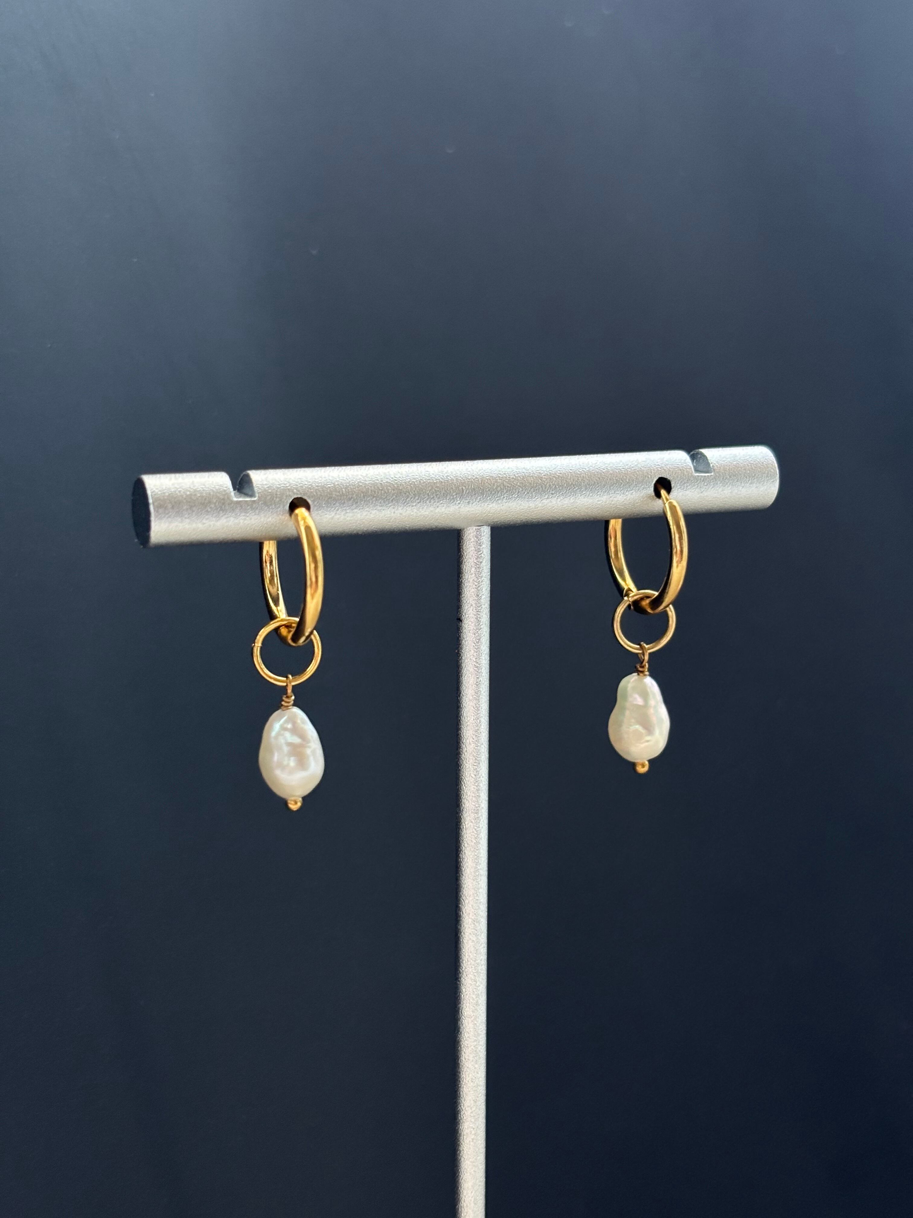 ステンレス製の金具に淡水パールを組み合わせ。